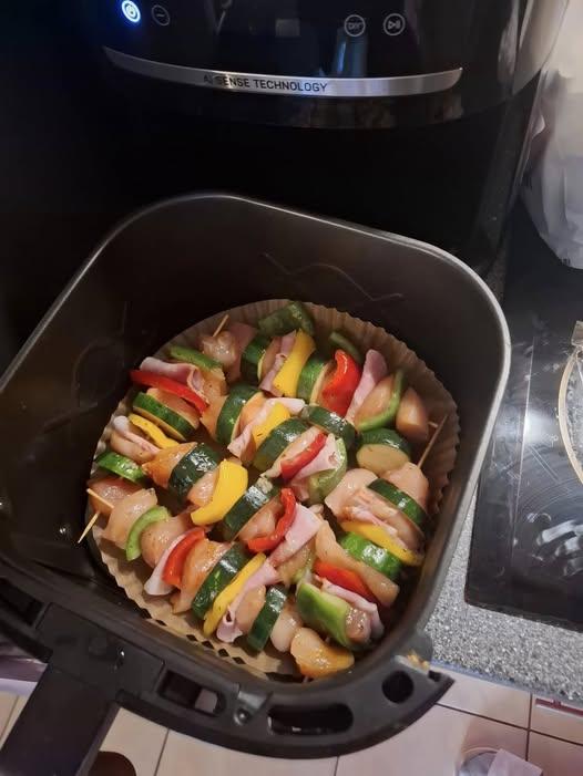 - Remove skewers from air fryer.