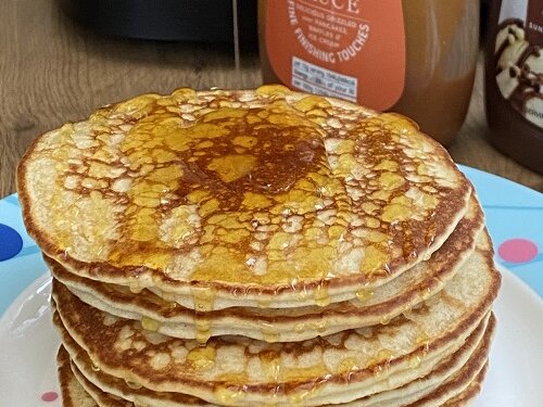Cooking time depends on the thickness of the pancake and the air fryer model.