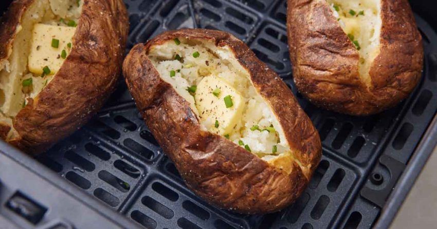 This allows steam to escape and prevents the potato from bursting in the oven.