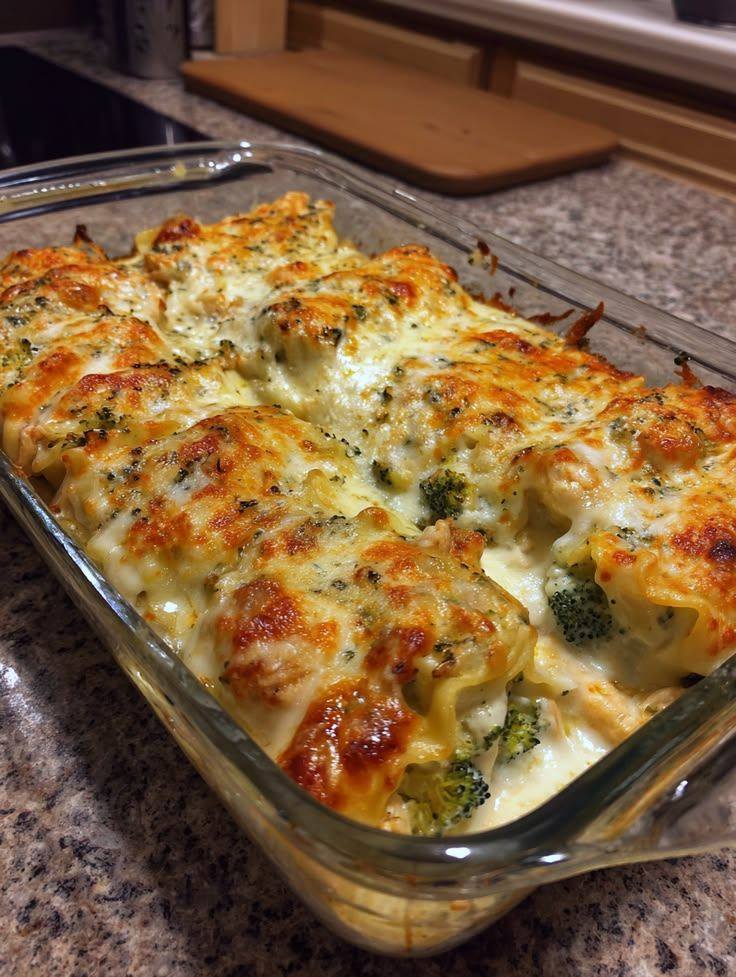 Spread a thin layer of Alfredo sauce in the bottom of the baking dish.