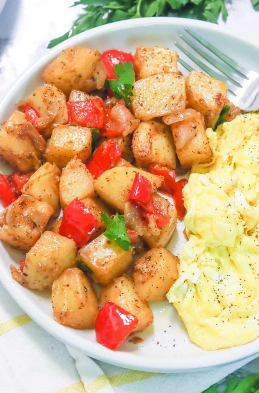 - Once potatoes are tender, uncover the skillet.