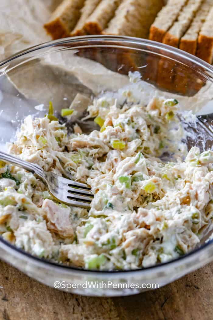 Cover the bowl and let the tuna salad rest in the refrigerator for 10 to 15 minutes.